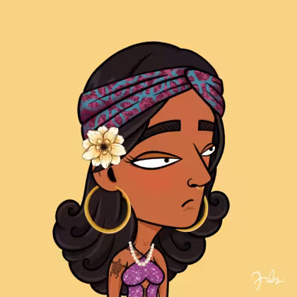 Collection Depressed Citizens Artist Juls Description ART. No team, no project, no future. Depressed Citizens is an urban & existential Art expression on Ordinals. In a parallel universe, "THEI" control us. DC unites against toxic society, encouraging critical thinking. 100% hand made collection that took Juls more than 6 months of daily work. Name Citizen#2615 Origin Asian & Pacific islander Gender Woman Necklace Pearl necklace Hat Printed headband Mustache Beard No beard Glasses No Glasses Earrings Beading hoops Hair Style Long wavy Clothes Glitter fuchsia halterneck top Tattoo Butterfly tattoo Star Background Without stars
