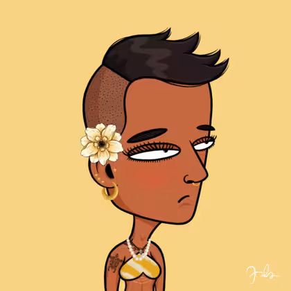 Collection Depressed Citizens Artist Juls Description ART. No team, no project, no future. Depressed Citizens is an urban & existential Art expression on Ordinals. In a parallel universe, "THEI" control us. DC unites against toxic society, encouraging critical thinking. 100% hand made collection that took Juls more than 6 months of daily work. Name Citizen#773 Origin Asian & Pacific islander Gender Woman Necklace Pearl necklace Hat No Hat Mustache Beard No beard Glasses No Glasses Earrings Tragus star earring Hair Style Short plane head Clothes Destiny's child crop top Tattoo Butterfly tattoo Star Background Without stars
