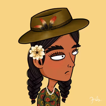 Collection Depressed Citizens Artist Juls Description ART. No team, no project, no future. Depressed Citizens is an urban & existential Art expression on Ordinals. In a parallel universe, "THEI" control us. DC unites against toxic society, encouraging critical thinking. 100% hand made collection that took Juls more than 6 months of daily work. Name Citizen#229 Origin Asian & Pacific islander Gender Woman Necklace Pearl necklace Hat Fedora hat Mustache Beard No beard Glasses No Glasses Earrings Ball earrings trio Hair Style Double braids Clothes Geometric ethnic long-sleeve dress Tattoo No Tattoo Star Background Without stars