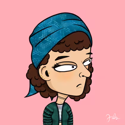 Collection Depressed Citizens Artist Juls Description ART. No team, no project, no future. Depressed Citizens is an urban & existential Art expression on Ordinals. In a parallel universe, "THEI" control us. DC unites against toxic society, encouraging critical thinking. 100% hand made collection that took Juls more than 6 months of daily work. Name Citizen#1795 Origin Caucasian non hispanic Gender Woman Necklace Choker Hat Printed head scarf Mustache Beard No beard Glasses No Glasses Earrings Tragus star earring Hair Style Curly Clothes Peace crop top Tattoo No Tattoo Star Background Without stars