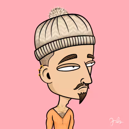 Collection Depressed Citizens Artist Juls Description ART. No team, no project, no future. Depressed Citizens is an urban & existential Art expression on Ordinals. In a parallel universe, "THEI" control us. DC unites against toxic society, encouraging critical thinking. 100% hand made collection that took Juls more than 6 months of daily work. Name Citizen#2424 Origin Caucasian non hispanic Gender Man Necklace Gold layered necklace Hat Bobble hat Mustache Beard Handlebar & chin puff Glasses No Glasses Earrings Helix ring trio Hair Style Shaved head Clothes Peach deep v-neck shirt Tattoo No Tattoo Star Background Without stars